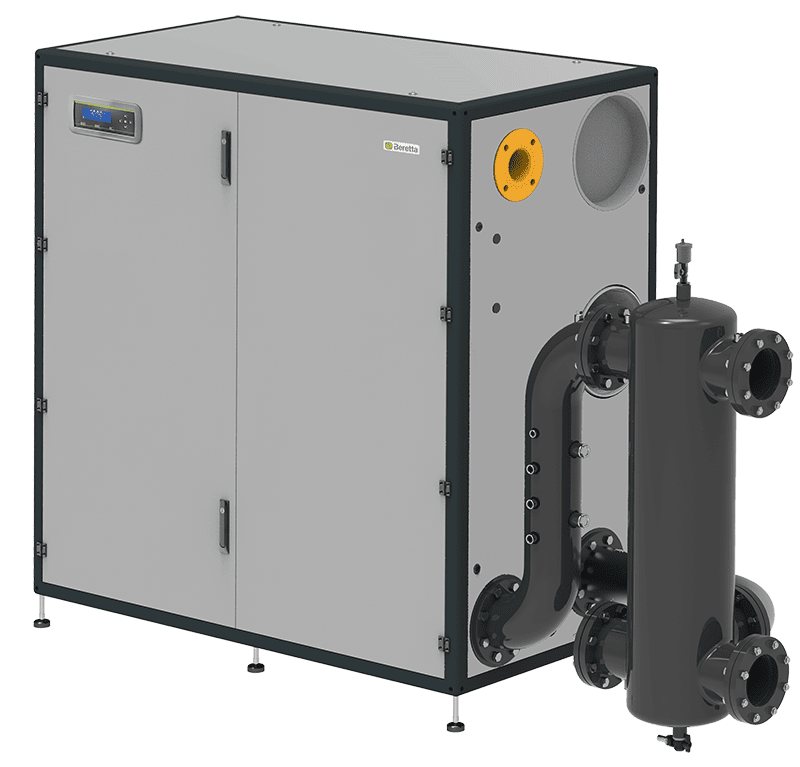 Tutti i modelli sono internamente corredati di collettori idraulici, gas, scarico condensa e scarico fumi, rendendo così possibile l’installazione interna a camera aperta e, con opportuni kit, l’installazione stagna o esterna, il tutto in uno spazio estremamente ridotto, ideale sia per le nuove centrali termiche, sia per i vecchi impianti di grandi dimensioni.